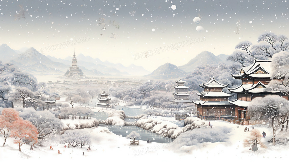 本作品内容为中式山水风景唯美插画, 格式为 jpg, 大小6 MB, 图片尺寸为2912 x 1632, 源文件无水印, 欢迎使用熊猫办公。 如认为平台内容涉嫌侵权,可通过邮件:tousu@tukuppt.com提出书面通知,我们将及时处理。