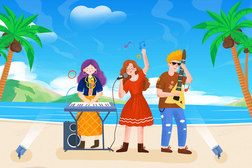 本作品内容为活力大学生海边演唱插画, 格式为 psd, 大小20 MB, 请使用软件PhotoShop(CC)打开, 源文件无水印, 欢迎使用熊猫办公。 如认为平台内容涉嫌侵权,可通过邮件:tousu@tukuppt.com提出书面通知,我们将及时处理。