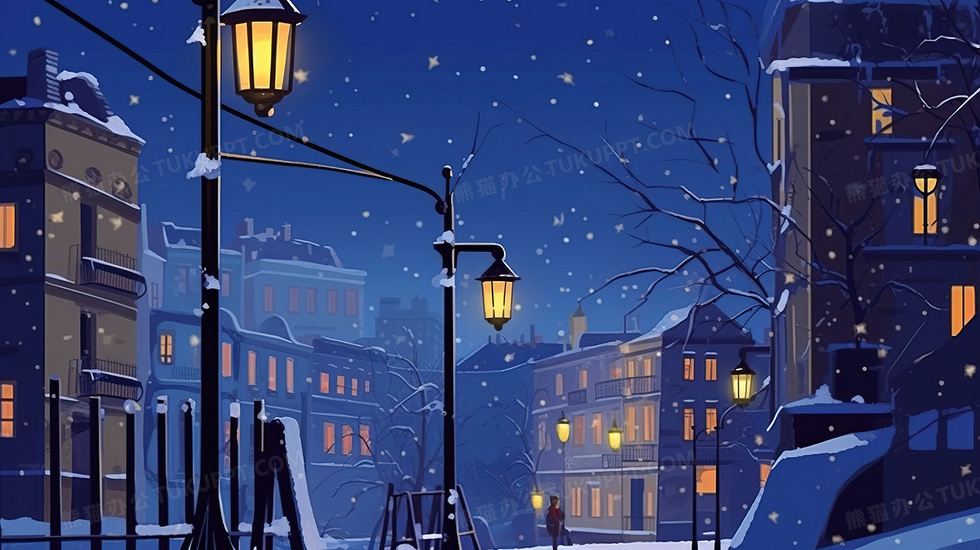本作品内容为冬季城市大雪夜景插画, 格式为 jpg, 大小6 MB, 图片尺寸为2912 x 1632, 源文件无水印, 欢迎使用熊猫办公。 如认为平台内容涉嫌侵权,可通过邮件:tousu@tukuppt.com提出书面通知,我们将及时处理。