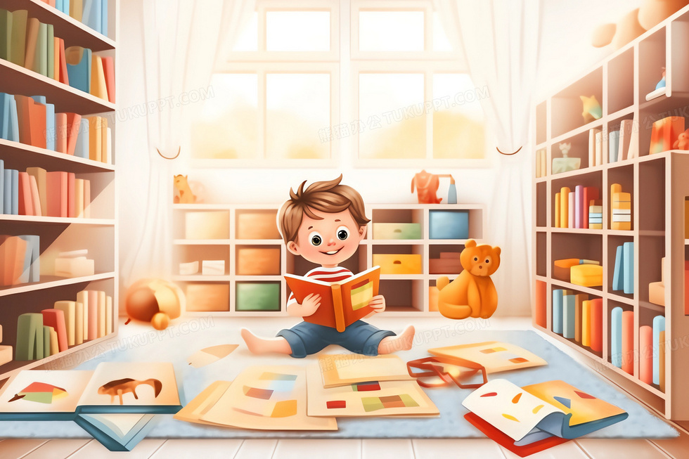 本作品内容为卡通风小男孩在书房坐着看书插图, 格式为 jpg, 大小3 MB, 图片尺寸为2688 x 1792, 源文件无水印, 欢迎使用熊猫办公。 如认为平台内容涉嫌侵权,可通过邮件:tousu@tukuppt.com提出书面通知,我们将及时处理。