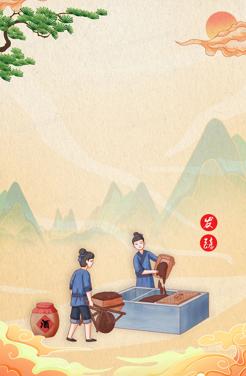 本作品内容为酒文化发酵背景图, 格式为 psd, 大小113 MB, 图片尺寸为3543 x 5413, 作品中背景图片无需修改, 源文件无水印,可以直接使用, 欢迎使用熊猫办公。 如认为平台内容涉嫌侵权,可通过邮件:tousu@tukuppt.com提出书面通知,我们将及时处理。