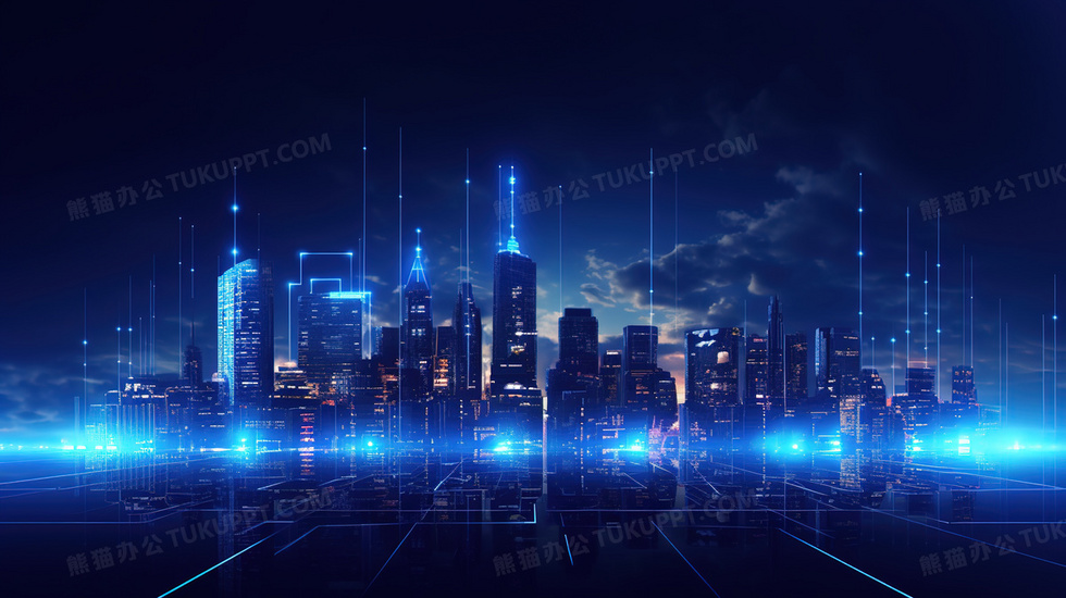 本作品内容为蓝色科技感智慧城市插画, 格式为 jpg, 大小5 MB, 图片尺寸为2912 x 1632, 源文件无水印, 欢迎使用熊猫办公。 如认为平台内容涉嫌侵权,可通过邮件:tousu@tukuppt.com提出书面通知,我们将及时处理。