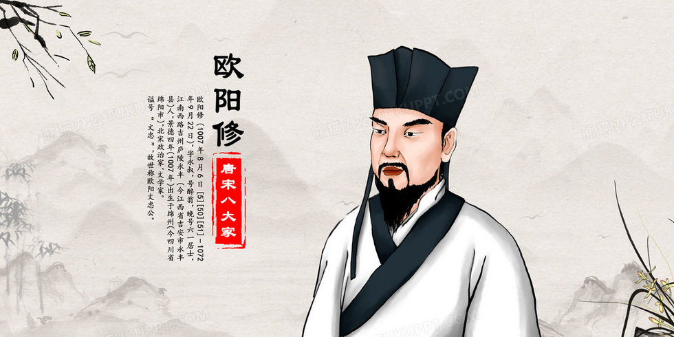 本作品内容为中国古代唐宋八大家之欧阳修人物介绍, 格式为 psd, 大小89 MB, 请使用软件PhotoShop(CC)打开, 源文件无水印, 欢迎使用熊猫办公。 如认为平台内容涉嫌侵权,可通过邮件:tousu@tukuppt.com提出书面通知,我们将及时处理。