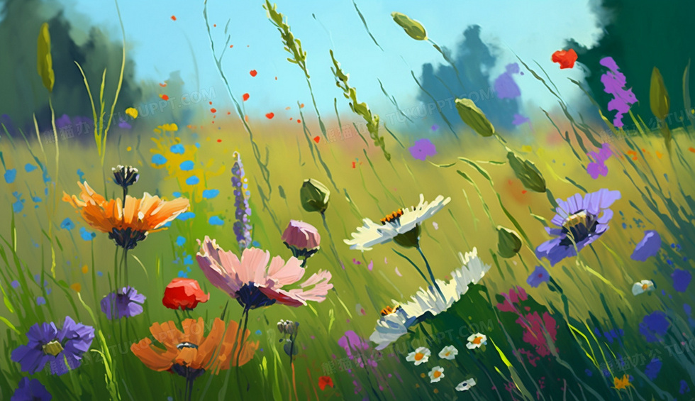 本作品内容为纹理绘画效果田园野花插画, 格式为 jpg, 大小2 MB, 图片尺寸为1664 x 960, 源文件无水印, 欢迎使用熊猫办公。 如认为平台内容涉嫌侵权,可通过邮件:tousu@tukuppt.com提出书面通知,我们将及时处理。