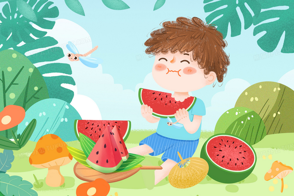 本作品内容为夏日小男孩吃西瓜插画, 格式为 psd, 大小61 MB, 请使用软件PhotoShop(CS6)打开, 源文件无水印, 欢迎使用熊猫办公。 如认为平台内容涉嫌侵权,可通过邮件:tousu@tukuppt.com提出书面通知,我们将及时处理。