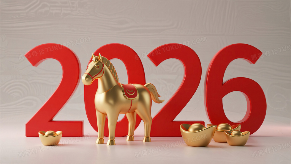 本作品内容为马年春节3D红色喜庆数字2026插画, 格式为 jpg, 大小3 MB, 图片尺寸为3328 x 1872, 源文件无水印, 欢迎使用熊猫办公。 如认为平台内容涉嫌侵权,可通过邮件:tousu@tukuppt.com提出书面通知,我们将及时处理。