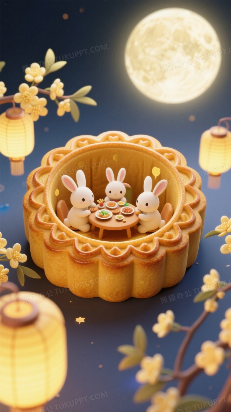 本作品内容为一个月饼形状为中心里面有兔子一家在吃饭, 格式为 jpg, 大小1 MB, 图片尺寸为936 x 1664, 源文件无水印, 欢迎使用熊猫办公。 如认为平台内容涉嫌侵权,可通过邮件:tousu@tukuppt.com提出书面通知,我们将及时处理。