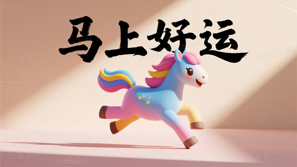 本作品内容为马年新年创意壁纸马上好运卡通马插画, 格式为 jpg, 大小5 MB, 图片尺寸为3328 x 1872, 源文件无水印, 欢迎使用熊猫办公。 如认为平台内容涉嫌侵权,可通过邮件:tousu@tukuppt.com提出书面通知,我们将及时处理。
