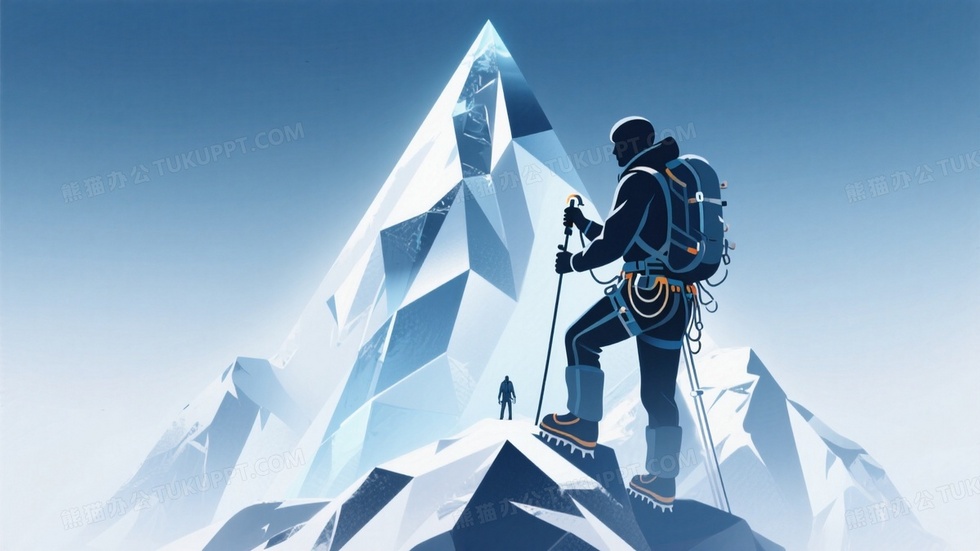 本作品内容为企业视觉雪山攀登者插画, 格式为 jpg, 大小1 MB, 图片尺寸为1664 x 936, 作品中背景图片无需修改, 源文件无水印,可以直接使用, 欢迎使用熊猫办公。 如认为平台内容涉嫌侵权,可通过邮件:tousu@tukuppt.com提出书面通知,我们将及时处理。