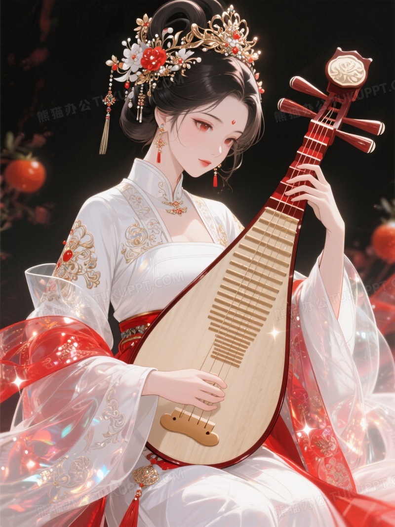 本作品内容为二次元风格一个穿着中国风服装的女人在弹琵琶, 格式为 jpg, 大小1 MB, 图片尺寸为1104 x 1472, 源文件无水印, 欢迎使用熊猫办公。 如认为平台内容涉嫌侵权,可通过邮件:tousu@tukuppt.com提出书面通知,我们将及时处理。