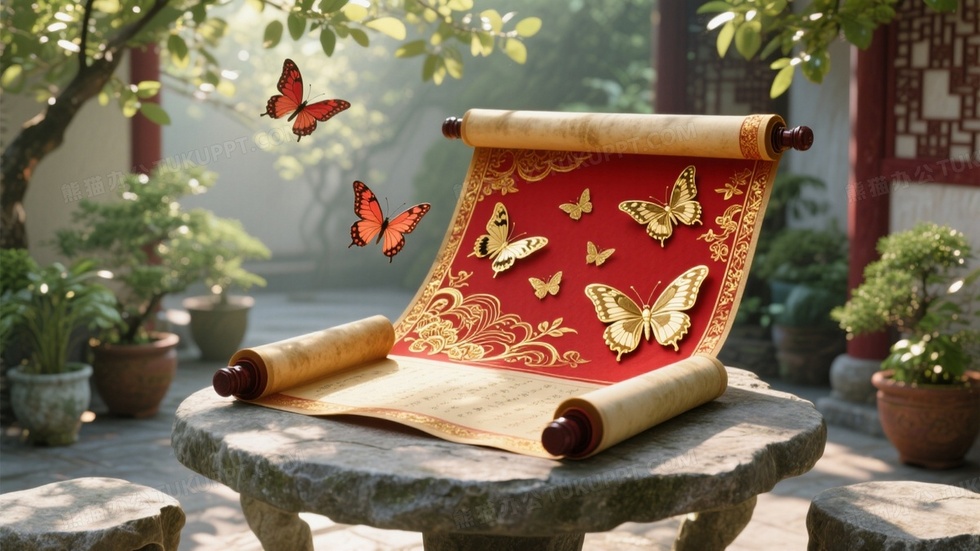 本作品内容为中国风3D场景一个打开的红色卷轴, 格式为 jpg, 大小1 MB, 图片尺寸为1664 x 936, 源文件无水印, 欢迎使用熊猫办公。 如认为平台内容涉嫌侵权,可通过邮件:tousu@tukuppt.com提出书面通知,我们将及时处理。