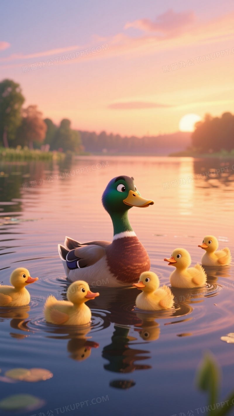 本作品内容为宁静的黄昏鸭妈妈和长大了的小鸭子们一起游在湖面上, 格式为 jpg, 大小1 MB, 图片尺寸为936 x 1664, 源文件无水印, 欢迎使用熊猫办公。 如认为平台内容涉嫌侵权,可通过邮件:tousu@tukuppt.com提出书面通知,我们将及时处理。