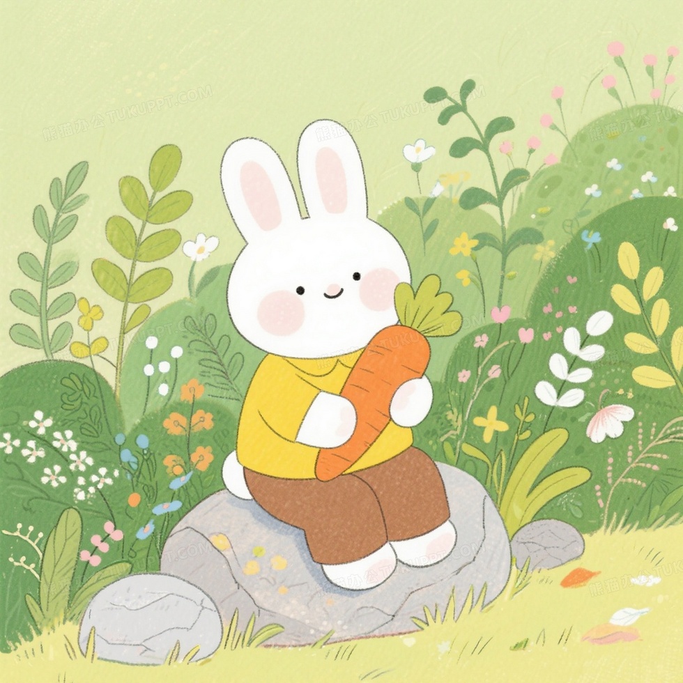 本作品内容为一幅清新治愈的插画呈现大白兔子, 格式为 jpg, 大小1 MB, 图片尺寸为1328 x 1328, 源文件无水印, 欢迎使用熊猫办公。 如认为平台内容涉嫌侵权,可通过邮件:tousu@tukuppt.com提出书面通知,我们将及时处理。