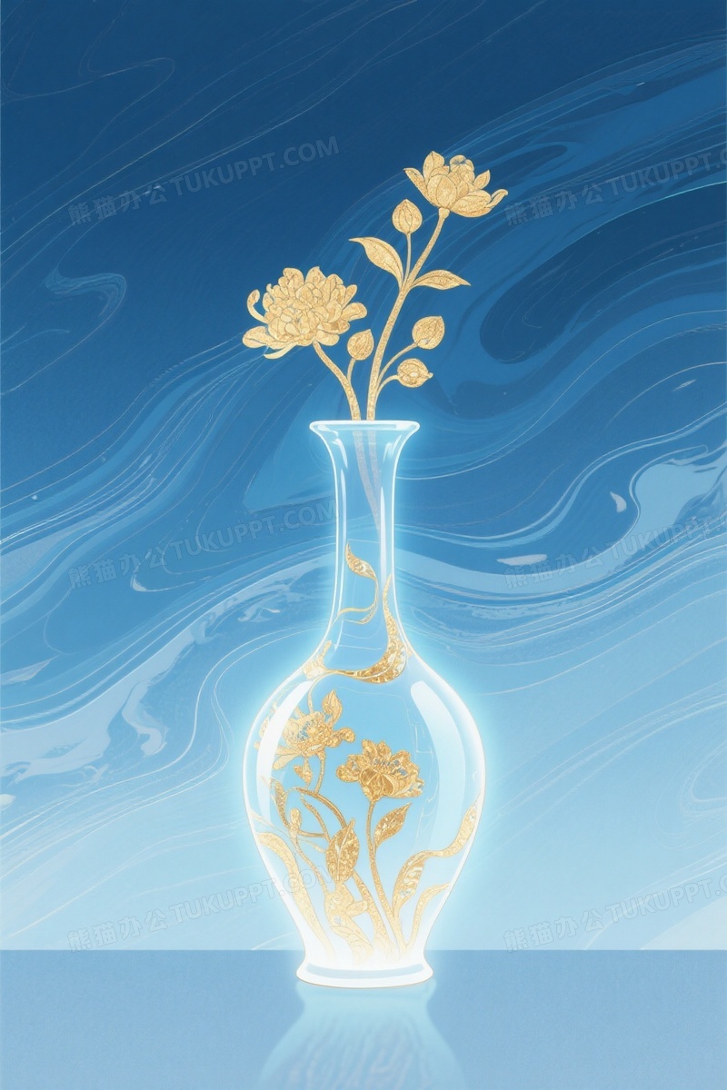 本作品内容为极简蓝调国风插画细长发光琉璃花瓶内含抽象金箔花卉, 格式为 jpg, 大小1 MB, 图片尺寸为1056 x 1584, 源文件无水印, 欢迎使用熊猫办公。 如认为平台内容涉嫌侵权,可通过邮件:tousu@tukuppt.com提出书面通知,我们将及时处理。