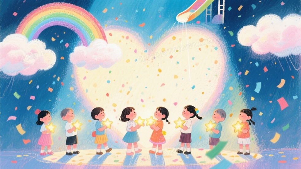 本作品内容为蜡笔质感治愈系插画孩子们手捧星星灯组成心形队列, 格式为 jpg, 大小1 MB, 图片尺寸为1664 x 936, 源文件无水印, 欢迎使用熊猫办公。 如认为平台内容涉嫌侵权,可通过邮件:tousu@tukuppt.com提出书面通知,我们将及时处理。