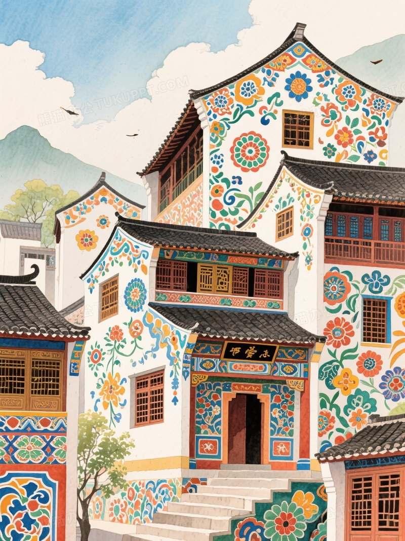 本作品内容为彩色传统古典图案房子, 格式为 jpg, 大小1 MB, 图片尺寸为1104 x 1472, 源文件无水印, 欢迎使用熊猫办公。 如认为平台内容涉嫌侵权,可通过邮件:tousu@tukuppt.com提出书面通知,我们将及时处理。