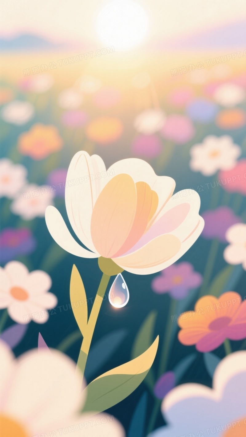 本作品内容为好看的扁平插画风格早晨的暖光洒在挂着一滴露珠的鲜花上, 格式为 jpg, 大小1 MB, 图片尺寸为936 x 1664, 源文件无水印, 欢迎使用熊猫办公。 如认为平台内容涉嫌侵权,可通过邮件:tousu@tukuppt.com提出书面通知,我们将及时处理。