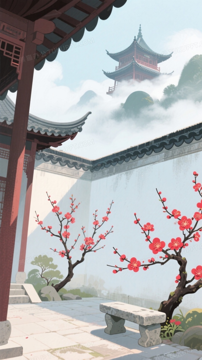 本作品内容为中式审美下的好看古风院子卡通插画, 格式为 jpg, 大小1 MB, 图片尺寸为936 x 1664, 源文件无水印, 欢迎使用熊猫办公。 如认为平台内容涉嫌侵权,可通过邮件:tousu@tukuppt.com提出书面通知,我们将及时处理。