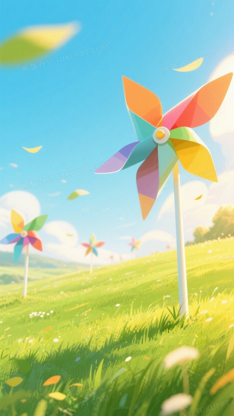 本作品内容为好看的卡通插画碧绿草原上彩色风车随风转动, 格式为 jpg, 大小1 MB, 图片尺寸为936 x 1664, 源文件无水印, 欢迎使用熊猫办公。 如认为平台内容涉嫌侵权,可通过邮件:tousu@tukuppt.com提出书面通知,我们将及时处理。