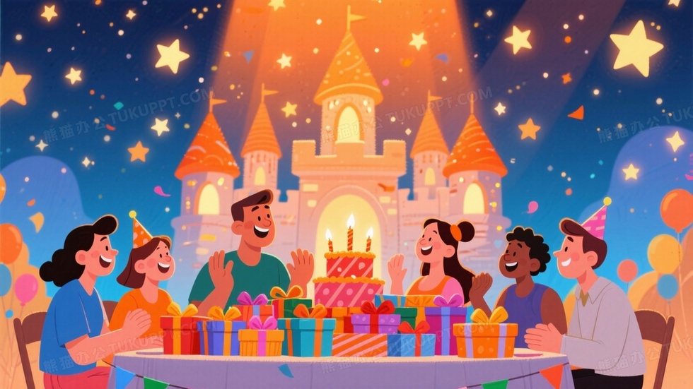 本作品内容为卡通插画风格的高清生日派对画面, 格式为 jpg, 大小1 MB, 图片尺寸为1664 x 936, 源文件无水印, 欢迎使用熊猫办公。 如认为平台内容涉嫌侵权,可通过邮件:tousu@tukuppt.com提出书面通知,我们将及时处理。