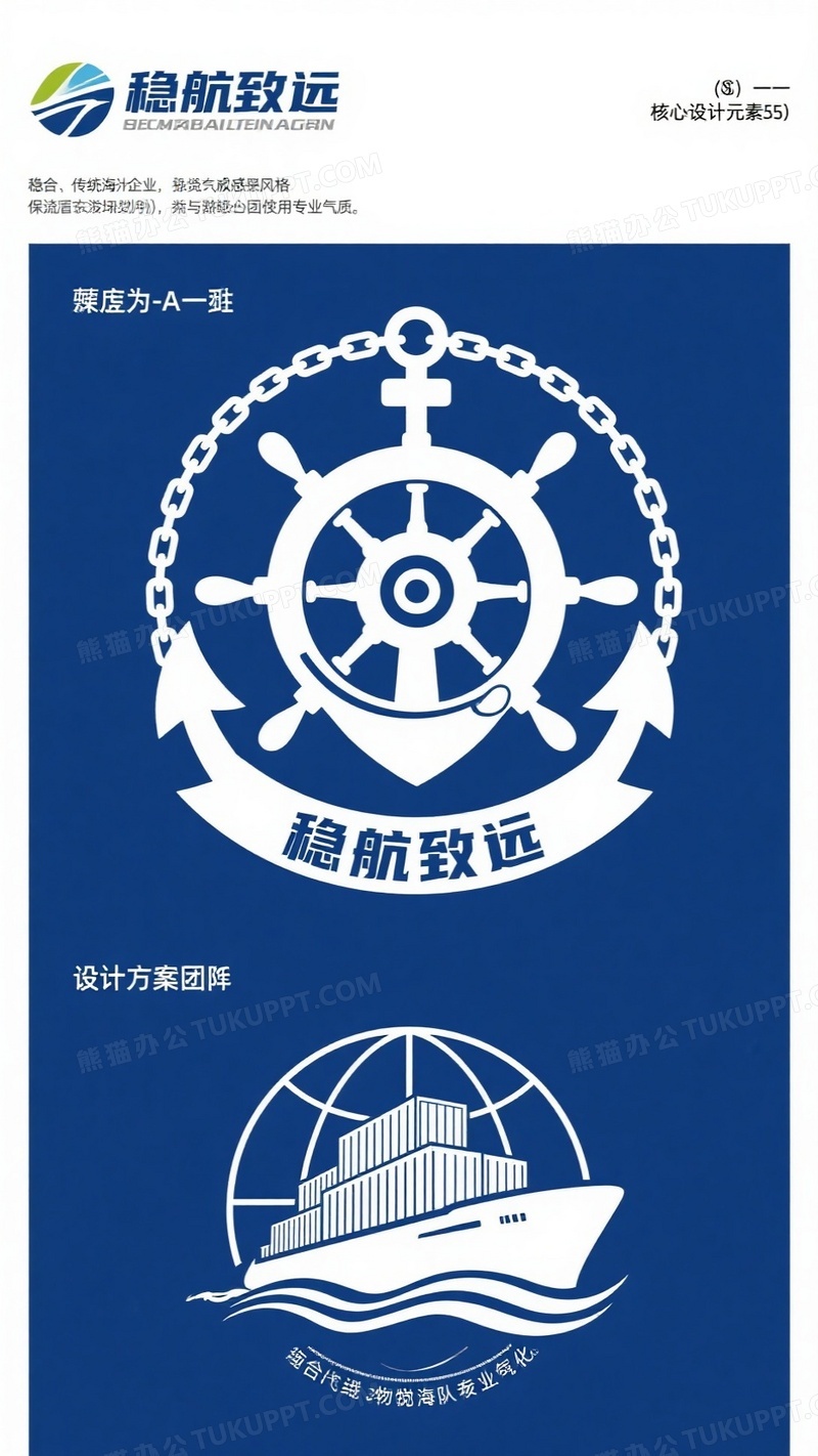 本作品内容为为稳航致远海运物流团队设计团徽, 格式为 jpg, 大小1 MB, 图片尺寸为936 x 1664, 源文件无水印, 欢迎使用熊猫办公。 如认为平台内容涉嫌侵权,可通过邮件:tousu@tukuppt.com提出书面通知,我们将及时处理。