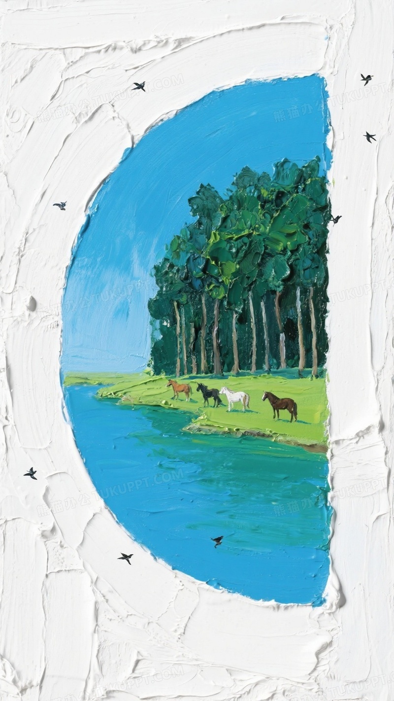 本作品内容为丙烯颜料画面中央有厚重颜料堆砌而成的抛物线圆弧曲面的碧水蓝天, 格式为 jpg, 大小1 MB, 图片尺寸为936 x 1664, 源文件无水印, 欢迎使用熊猫办公。 如认为平台内容涉嫌侵权,可通过邮件:tousu@tukuppt.com提出书面通知,我们将及时处理。