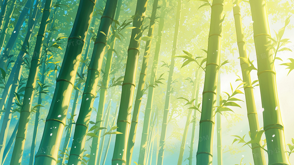 本作品内容为唯美春天翠绿竹林风景插画, 格式为 jpg, 大小3 MB, 图片尺寸为2912 x 1632, 源文件无水印, 欢迎使用熊猫办公。 如认为平台内容涉嫌侵权,可通过邮件:tousu@tukuppt.com提出书面通知,我们将及时处理。