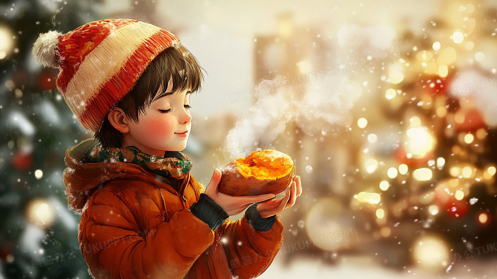 本作品内容为男孩捧着东北当地特色美食烤地瓜插画, 格式为 jpg, 大小3 MB, 图片尺寸为2912 x 1632, 源文件无水印, 欢迎使用熊猫办公。 如认为平台内容涉嫌侵权,可通过邮件:tousu@tukuppt.com提出书面通知,我们将及时处理。