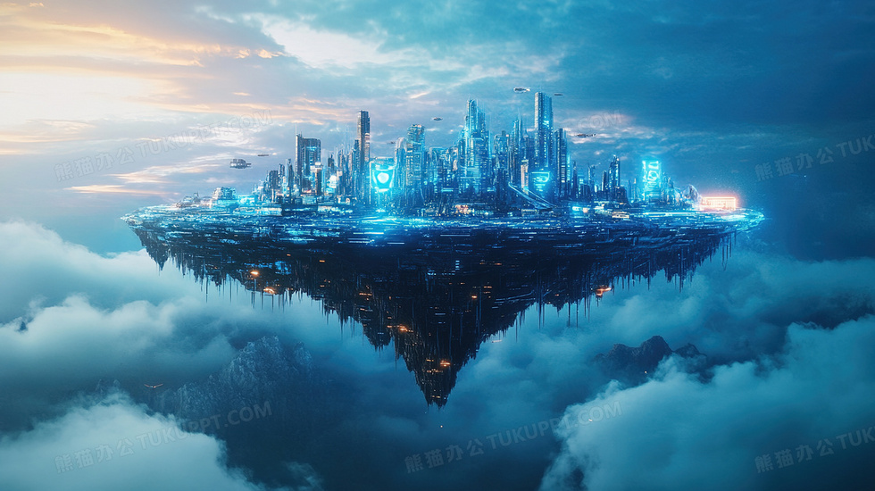 本作品内容为未来科技虚拟城市悬空岛屿城市插画, 格式为 jpg, 大小3 MB, 图片尺寸为2912 x 1632, 源文件无水印, 欢迎使用熊猫办公。 如认为平台内容涉嫌侵权,可通过邮件:tousu@tukuppt.com提出书面通知,我们将及时处理。