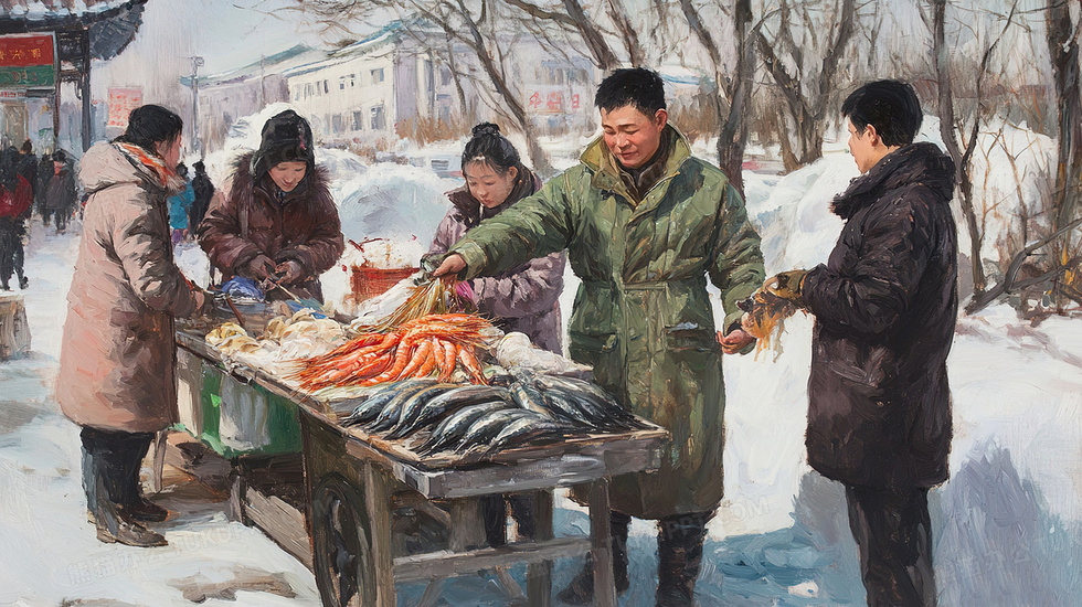 本作品内容为东北早市上卖海鲜的摊贩场景插画, 格式为 jpg, 大小5 MB, 图片尺寸为2912 x 1632, 源文件无水印, 欢迎使用熊猫办公。 如认为平台内容涉嫌侵权,可通过邮件:tousu@tukuppt.com提出书面通知,我们将及时处理。