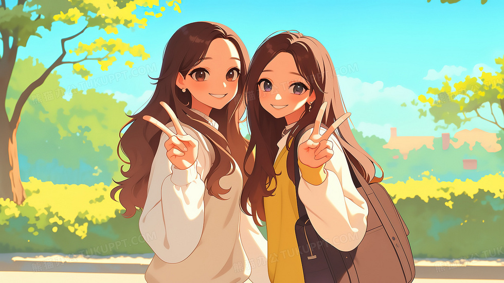 本作品内容为卡通女孩闺蜜朋友合照插画, 格式为 jpg, 大小3 MB, 图片尺寸为2912 x 1632, 源文件无水印, 欢迎使用熊猫办公。 如认为平台内容涉嫌侵权,可通过邮件:tousu@tukuppt.com提出书面通知,我们将及时处理。