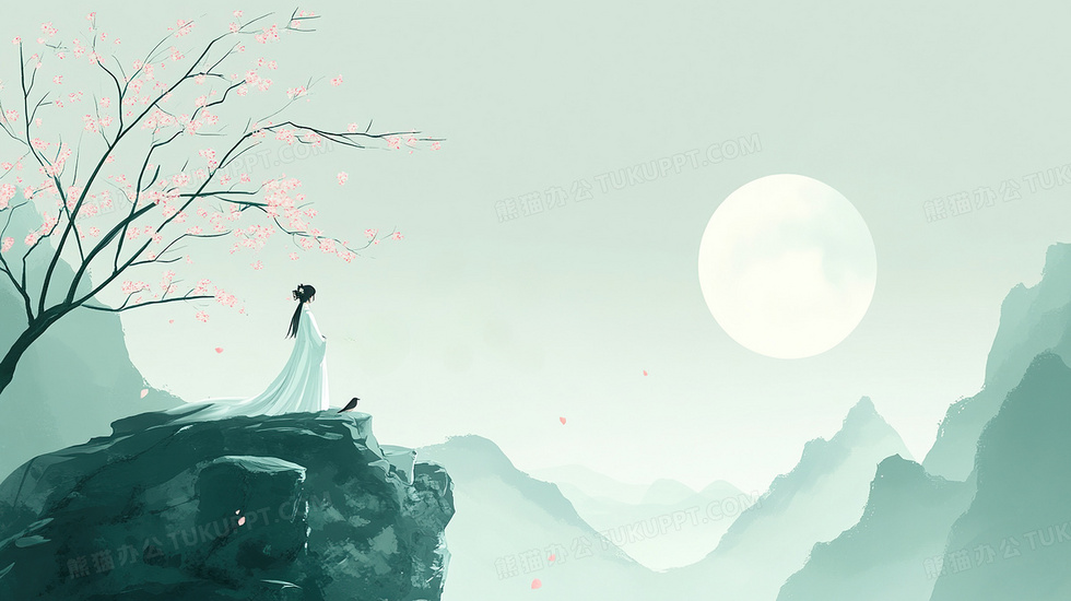 本作品内容为中国风春天山脉人物背景, 格式为 jpg, 大小2 MB, 图片尺寸为2912 x 1632, 作品中背景图片无需修改, 源文件无水印,可以直接使用, 欢迎使用熊猫办公。 如认为平台内容涉嫌侵权,可通过邮件:tousu@tukuppt.com提出书面通知,我们将及时处理。
