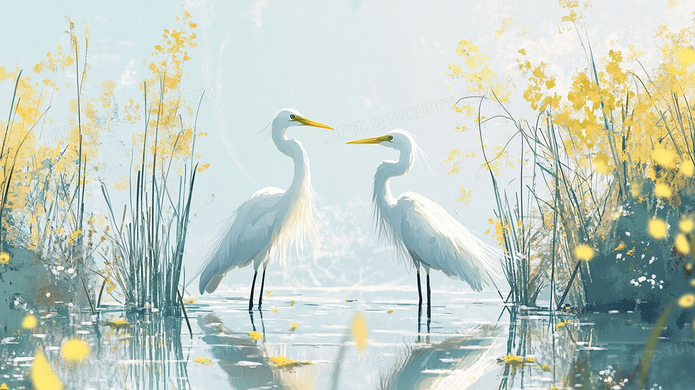本作品内容为芦苇丹顶鹤小清新自然风景插画, 格式为 jpg, 大小4 MB, 图片尺寸为2912 x 1632, 源文件无水印, 欢迎使用熊猫办公。 如认为平台内容涉嫌侵权,可通过邮件:tousu@tukuppt.com提出书面通知,我们将及时处理。