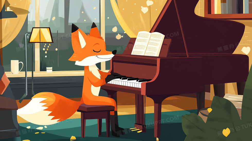 本作品内容为弹奏钢琴的可爱卡通狐狸音乐家插画, 格式为 jpg, 大小2 MB, 图片尺寸为2912 x 1632, 源文件无水印, 欢迎使用熊猫办公。 如认为平台内容涉嫌侵权,可通过邮件:tousu@tukuppt.com提出书面通知,我们将及时处理。