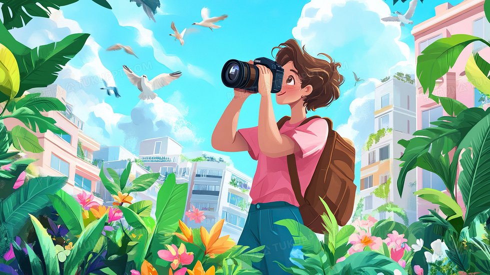 本作品内容为卡通风在公园拍照插画, 格式为 jpg, 大小4 MB, 图片尺寸为2912 x 1632, 源文件无水印, 欢迎使用熊猫办公。 如认为平台内容涉嫌侵权,可通过邮件:tousu@tukuppt.com提出书面通知,我们将及时处理。