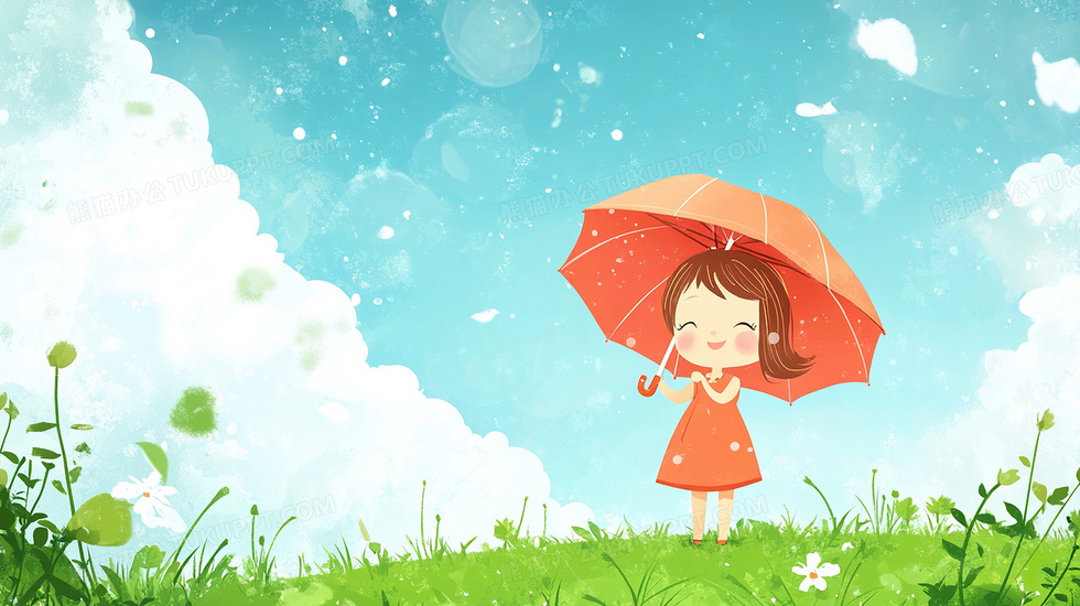 本作品内容为卡通女孩打伞背景, 格式为 jpg, 大小3 MB, 图片尺寸为2912 x 1632, 作品中背景图片无需修改, 源文件无水印,可以直接使用, 欢迎使用熊猫办公。 如认为平台内容涉嫌侵权,可通过邮件:tousu@tukuppt.com提出书面通知,我们将及时处理。