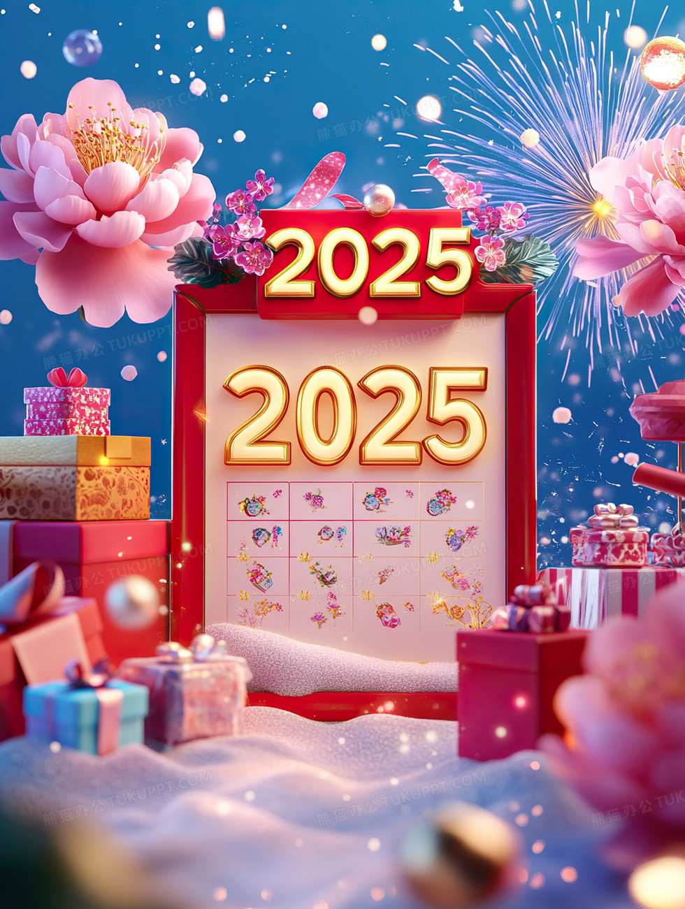 本作品内容为2025新年元旦台历插画, 格式为 jpg, 大小3 MB, 图片尺寸为1856 x 2464, 源文件无水印, 欢迎使用熊猫办公。 如认为平台内容涉嫌侵权,可通过邮件:tousu@tukuppt.com提出书面通知,我们将及时处理。