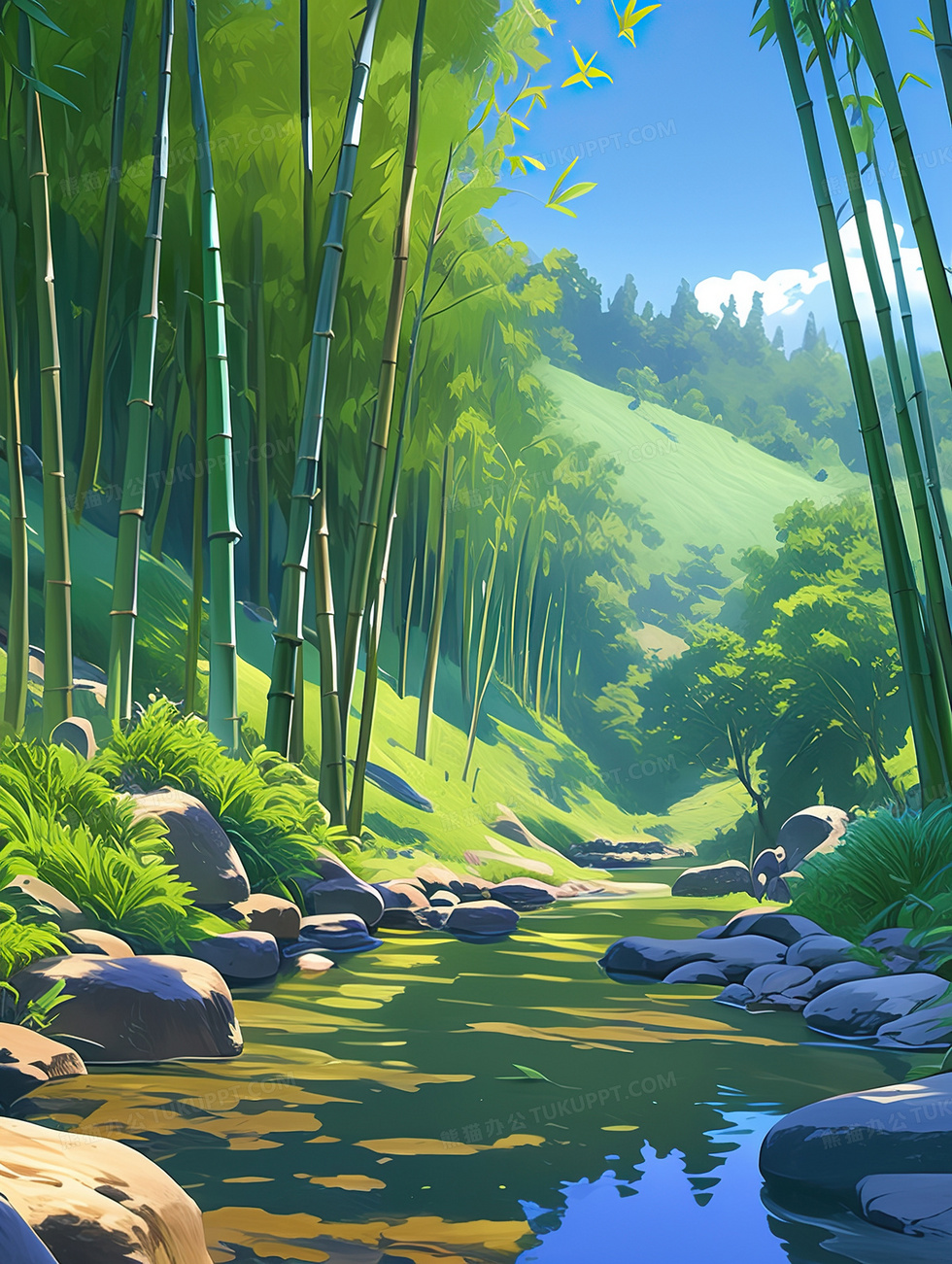 本作品内容为翡翠竹林唯美风景插画, 格式为 jpg, 大小3 MB, 图片尺寸为1856 x 2464, 源文件无水印, 欢迎使用熊猫办公。 如认为平台内容涉嫌侵权,可通过邮件:tousu@tukuppt.com提出书面通知,我们将及时处理。