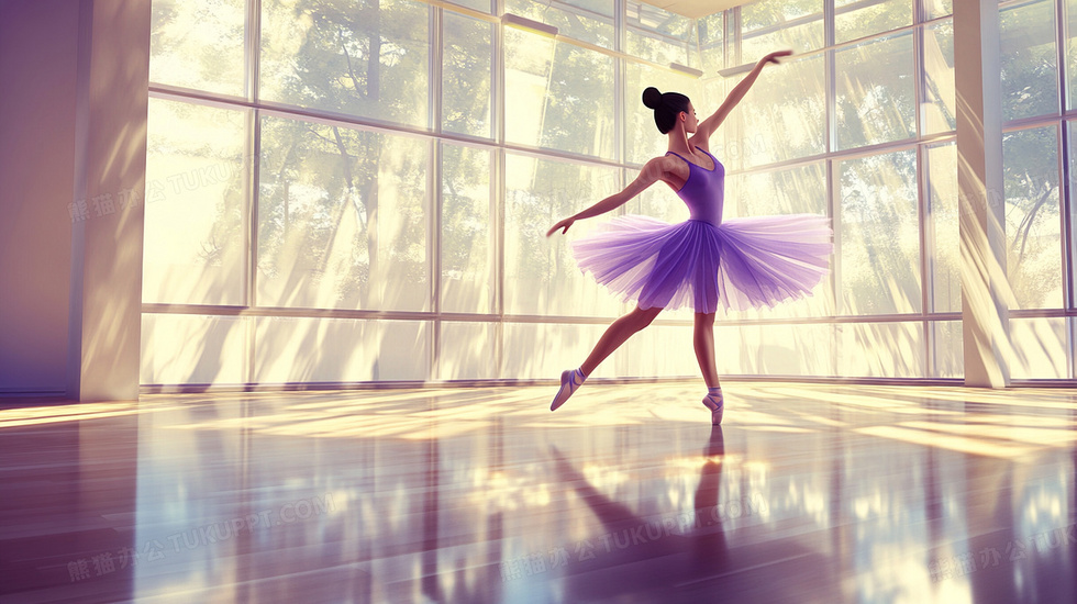本作品内容为舞蹈室跳芭蕾舞的小女生卡通插画, 格式为 jpg, 大小3 MB, 图片尺寸为2912 x 1632, 源文件无水印, 欢迎使用熊猫办公。 如认为平台内容涉嫌侵权,可通过邮件:tousu@tukuppt.com提出书面通知,我们将及时处理。
