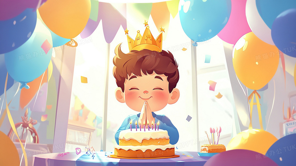 本作品内容为卡通风生日许愿的男孩插画, 格式为 jpg, 大小2 MB, 图片尺寸为2912 x 1632, 源文件无水印, 欢迎使用熊猫办公。 如认为平台内容涉嫌侵权,可通过邮件:tousu@tukuppt.com提出书面通知,我们将及时处理。