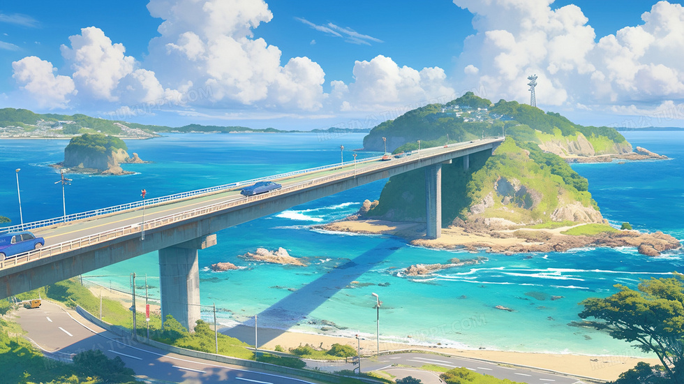 首页 > 插画 > 科技艺术 > 卡通漫画 > 跨海大桥海边风景蓝天白云插画