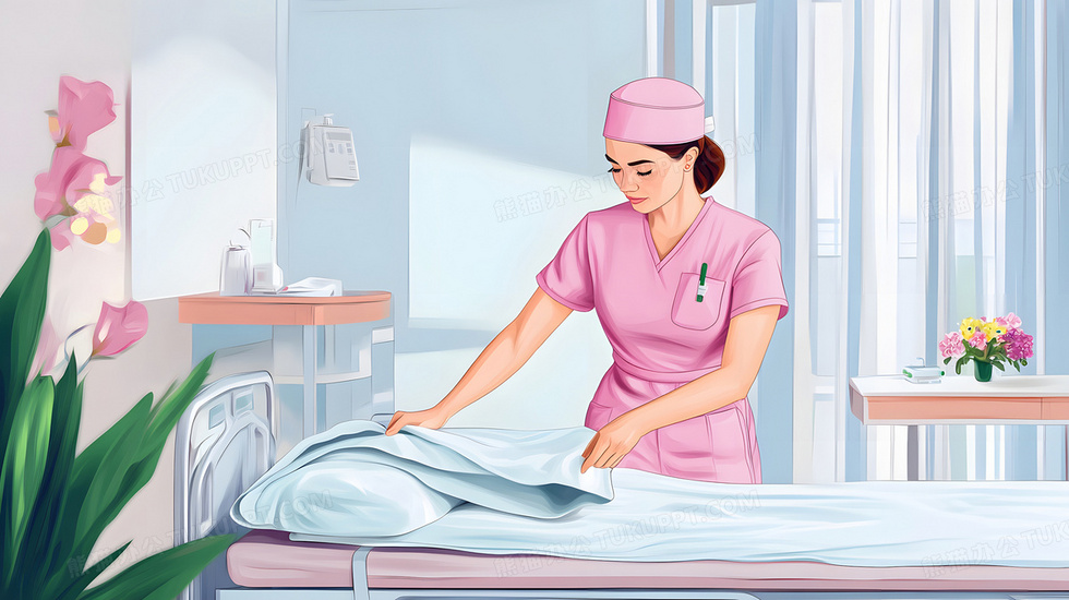 本作品内容为卡通风格护士护士节护士职业整理病床插画, 格式为 jpg, 大小2 MB, 图片尺寸为2912 x 1632, 源文件无水印, 欢迎使用熊猫办公。 如认为平台内容涉嫌侵权,可通过邮件:tousu@tukuppt.com提出书面通知,我们将及时处理。