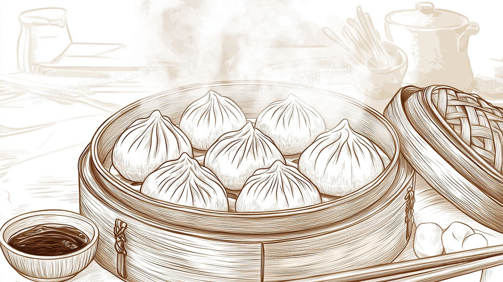 本作品内容为小笼包单色白描插画, 格式为 jpg, 大小4 MB, 图片尺寸为2912 x 1632, 源文件无水印, 欢迎使用熊猫办公。 如认为平台内容涉嫌侵权,可通过邮件:tousu@tukuppt.com提出书面通知,我们将及时处理。