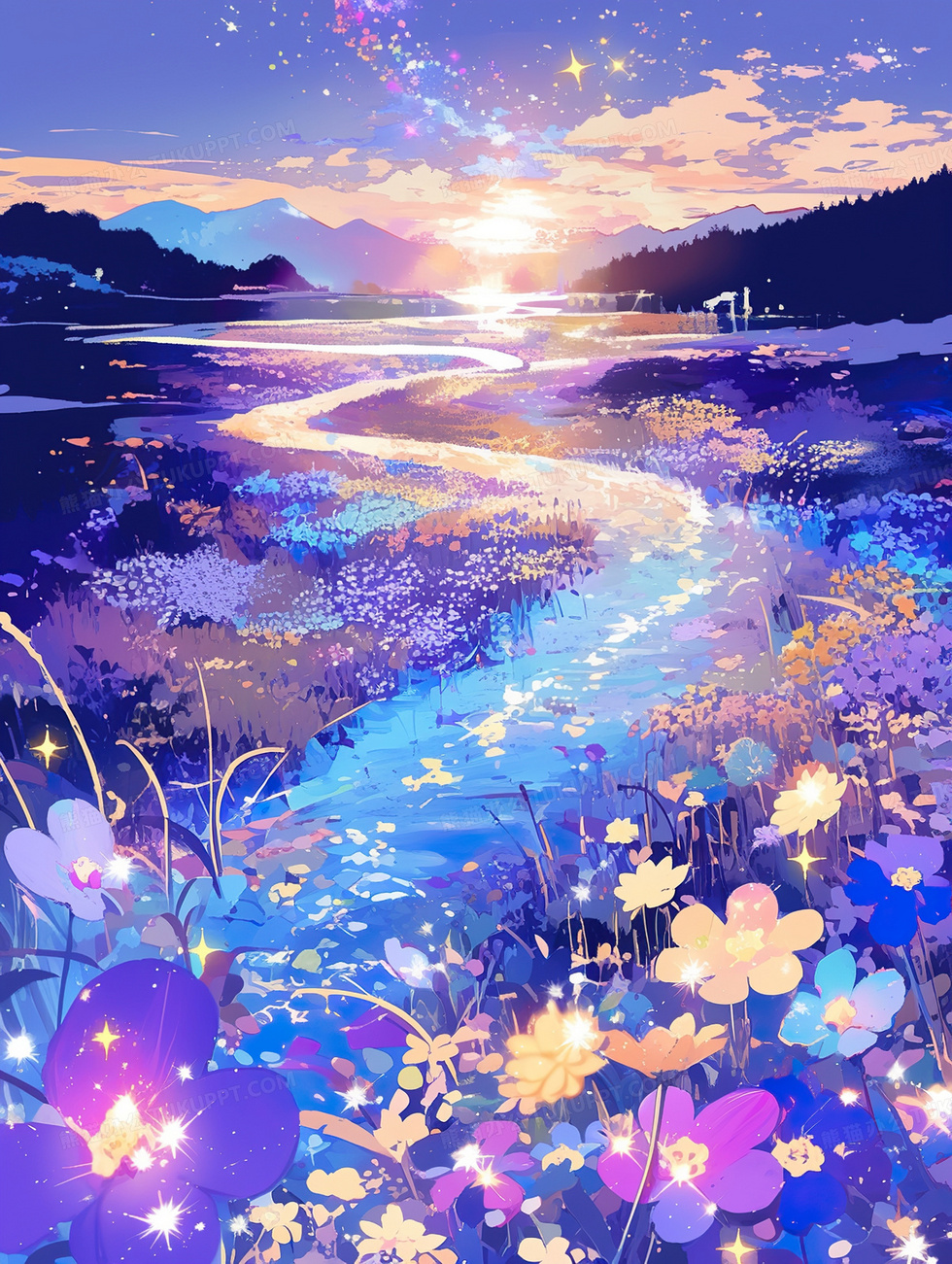本作品内容为许愿星辰花海唯美风景插画, 格式为 jpg, 大小4 MB, 图片尺寸为1856 x 2464, 源文件无水印, 欢迎使用熊猫办公。 如认为平台内容涉嫌侵权,可通过邮件:tousu@tukuppt.com提出书面通知,我们将及时处理。
