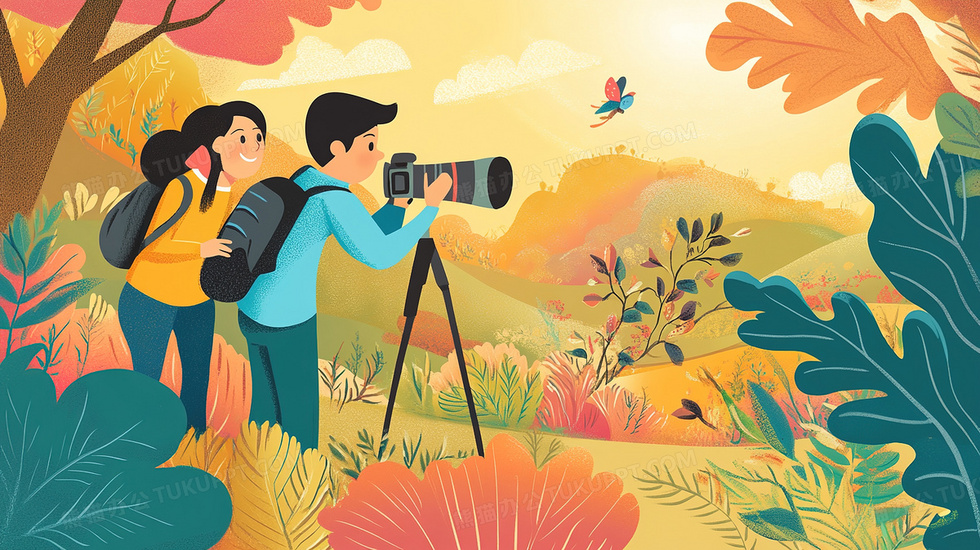 本作品内容为秋天户外男孩拿着相机拍摄美丽的景色插画, 格式为 jpg, 大小4 MB, 图片尺寸为2912 x 1632, 源文件无水印, 欢迎使用熊猫办公。 如认为平台内容涉嫌侵权,可通过邮件:tousu@tukuppt.com提出书面通知,我们将及时处理。