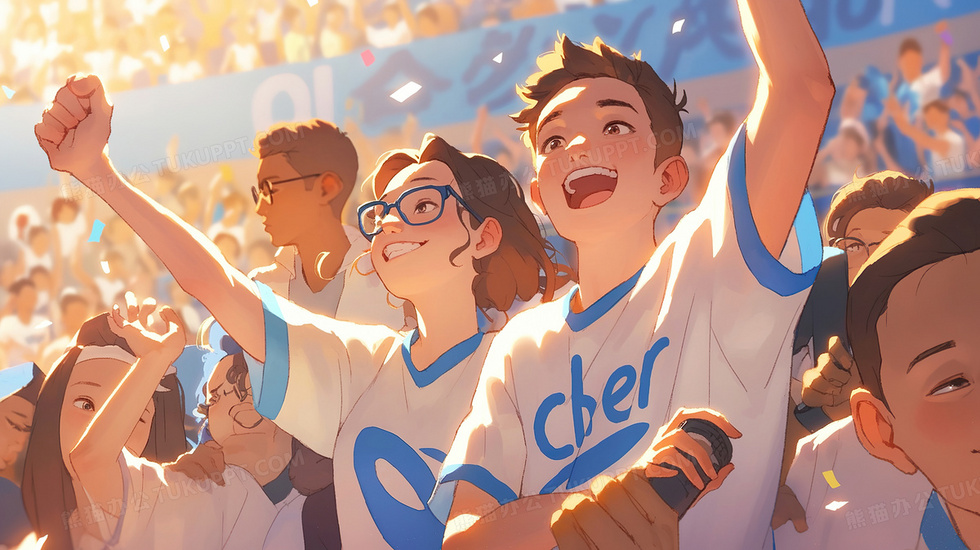本作品内容为学生体育赛事加油场景插画, 格式为 jpg, 大小5 MB, 图片尺寸为2912 x 1632, 源文件无水印, 欢迎使用熊猫办公。 如认为平台内容涉嫌侵权,可通过邮件:tousu@tukuppt.com提出书面通知,我们将及时处理。