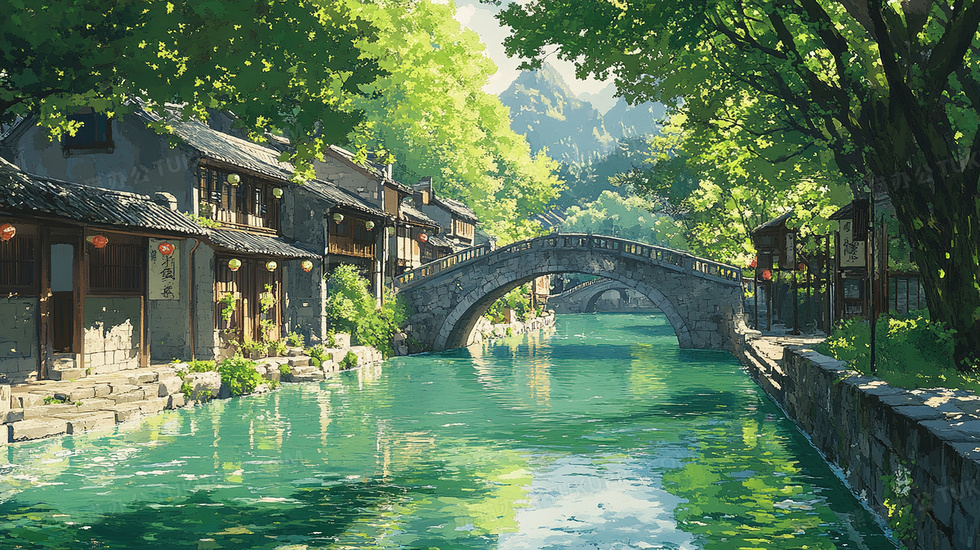 本作品内容为江南水乡湖面上石桥插画, 格式为 jpg, 大小5 MB, 图片尺寸为2912 x 1632, 源文件无水印, 欢迎使用熊猫办公。 如认为平台内容涉嫌侵权,可通过邮件:tousu@tukuppt.com提出书面通知,我们将及时处理。