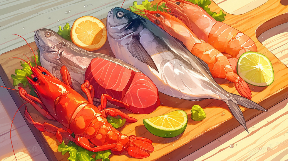 本作品内容为木板上的生鲜食材河虾大鱼插画, 格式为 jpg, 大小3 MB, 图片尺寸为2912 x 1632, 源文件无水印, 欢迎使用熊猫办公。 如认为平台内容涉嫌侵权,可通过邮件:tousu@tukuppt.com提出书面通知,我们将及时处理。