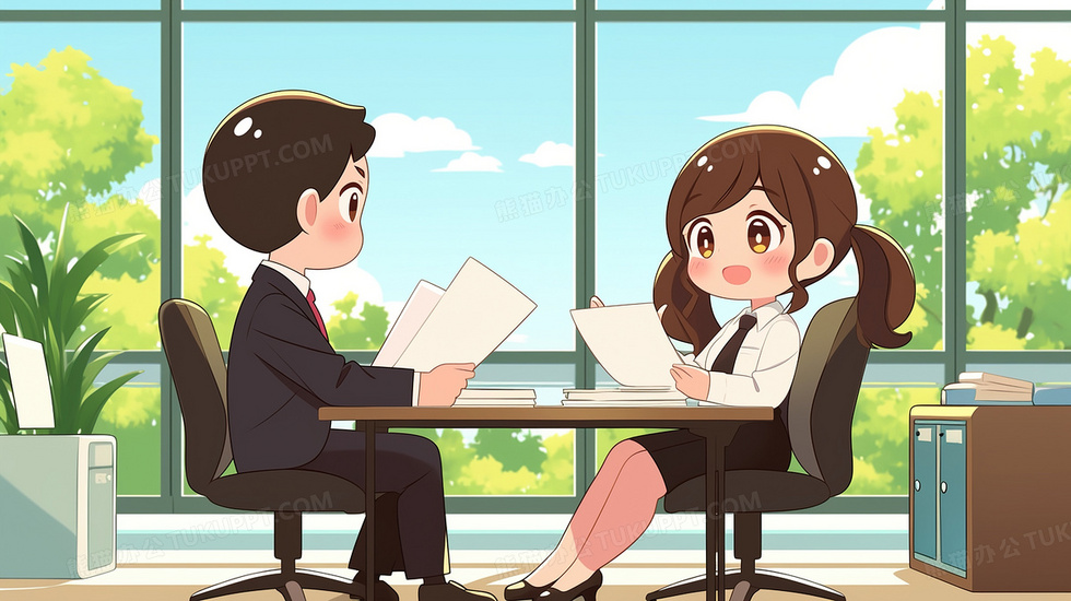 本作品内容为Q版商务打工人交流谈判插画, 格式为 jpg, 大小2 MB, 图片尺寸为2912 x 1632, 源文件无水印, 欢迎使用熊猫办公。 如认为平台内容涉嫌侵权,可通过邮件:tousu@tukuppt.com提出书面通知,我们将及时处理。