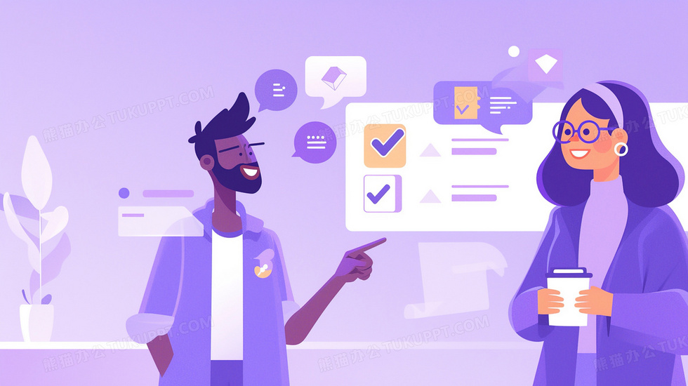 本作品内容为扁平化商务人士交谈插画, 格式为 jpg, 大小2 MB, 图片尺寸为2912 x 1632, 源文件无水印, 欢迎使用熊猫办公。 如认为平台内容涉嫌侵权,可通过邮件:tousu@tukuppt.com提出书面通知,我们将及时处理。